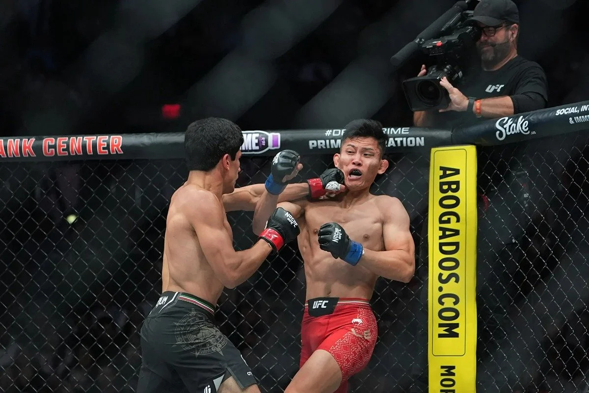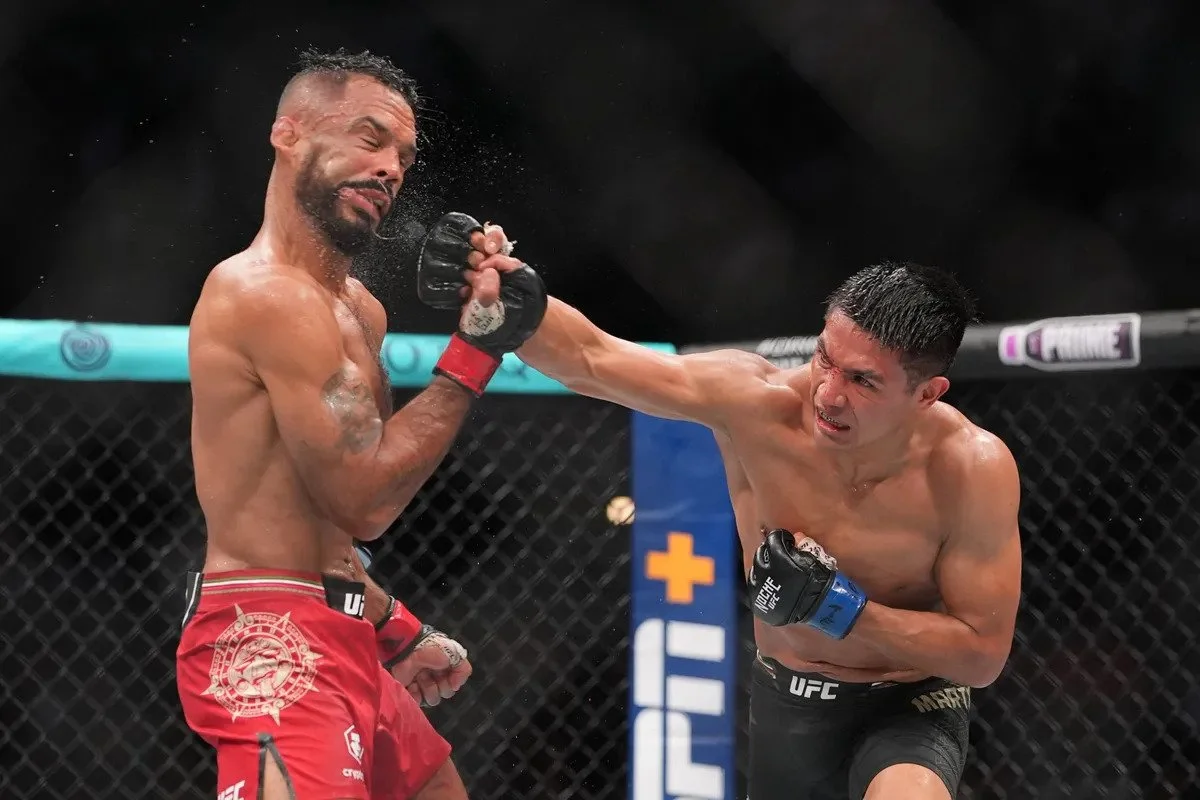 Sumudaerji tags Mitcho Raposo with a jab. Credit: Zuffa LLC.
