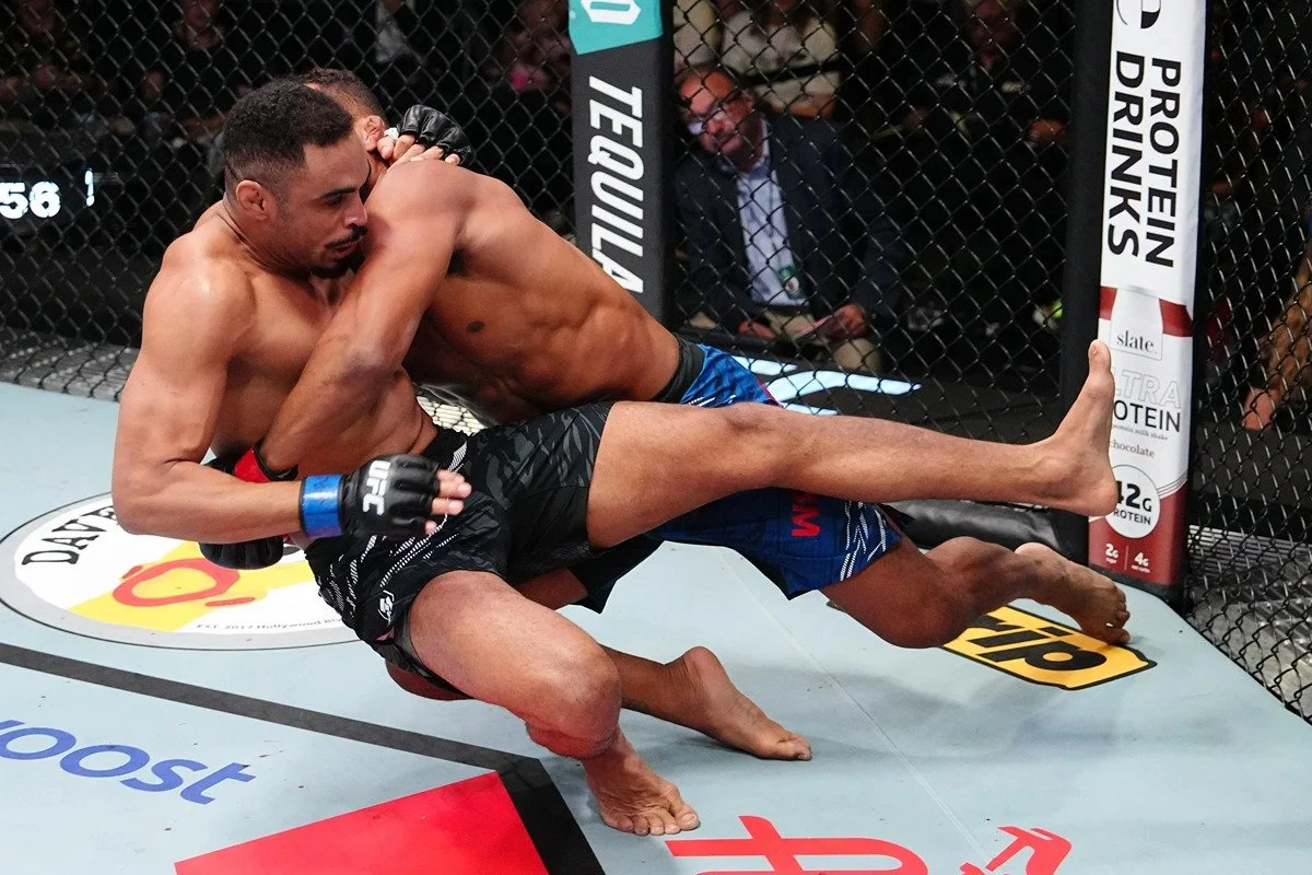 Julius Walker secures a lunging takedown on Rafael Cerqueira. Credit: MMA Mania.