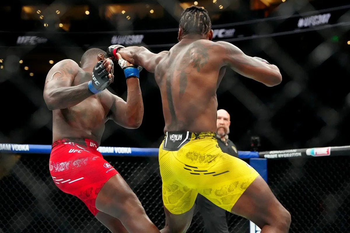 Ryan Spann stuns Ovince Saint Preux with a heavy left hand. Credit: MMA Junkie.