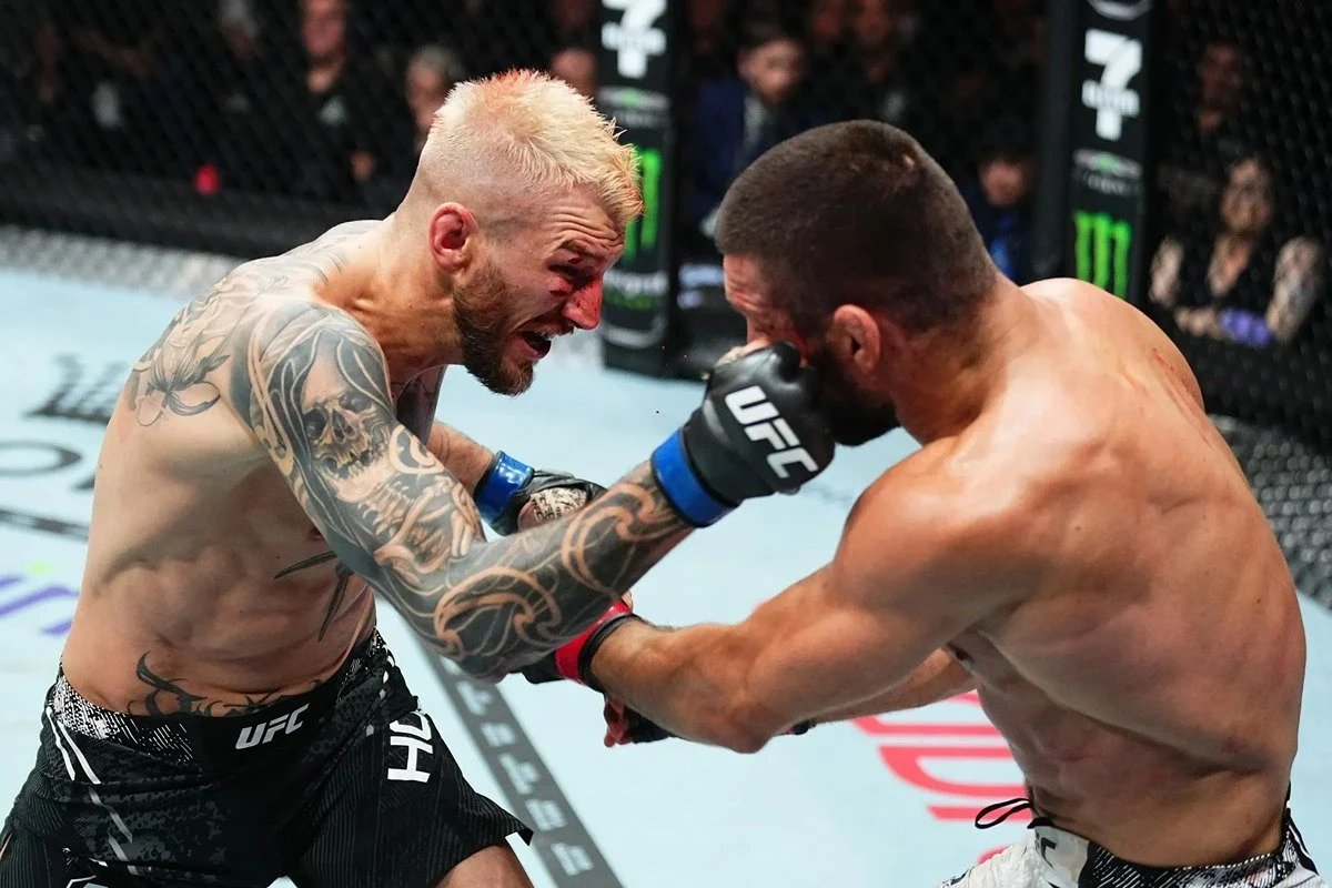 Arman Tsarukyan blasts Beneil Dariush with a thudding right hand. Credit: MMA Fighting.